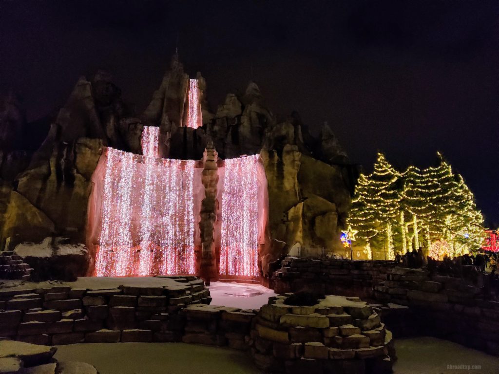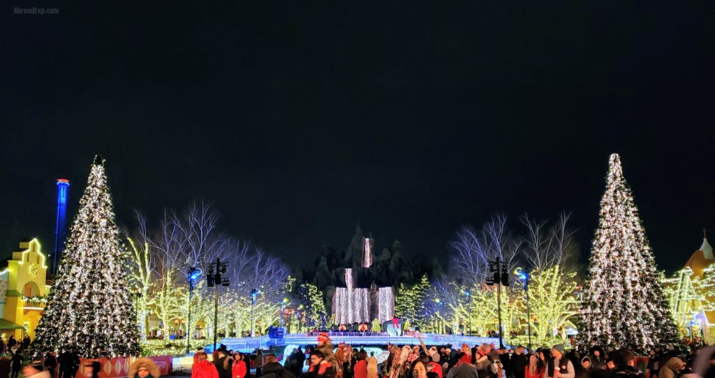 Para empezar, el parque fue equipado con una enorme Pista de patinaje sobre hielo (arriba) ubicada frente a Wonder Mountain (abajo). Un variado itinerario de actividades y entretenimiento navideño en vivo, estaciones de chocolate caliente por doquier y cientos de árboles navideños decorando cada rincón del parque (con un total de más de 5 millones de luces y 200 mil adornos), entregaron una envolvente y mágica experiencia festiva a todos los visitantes .